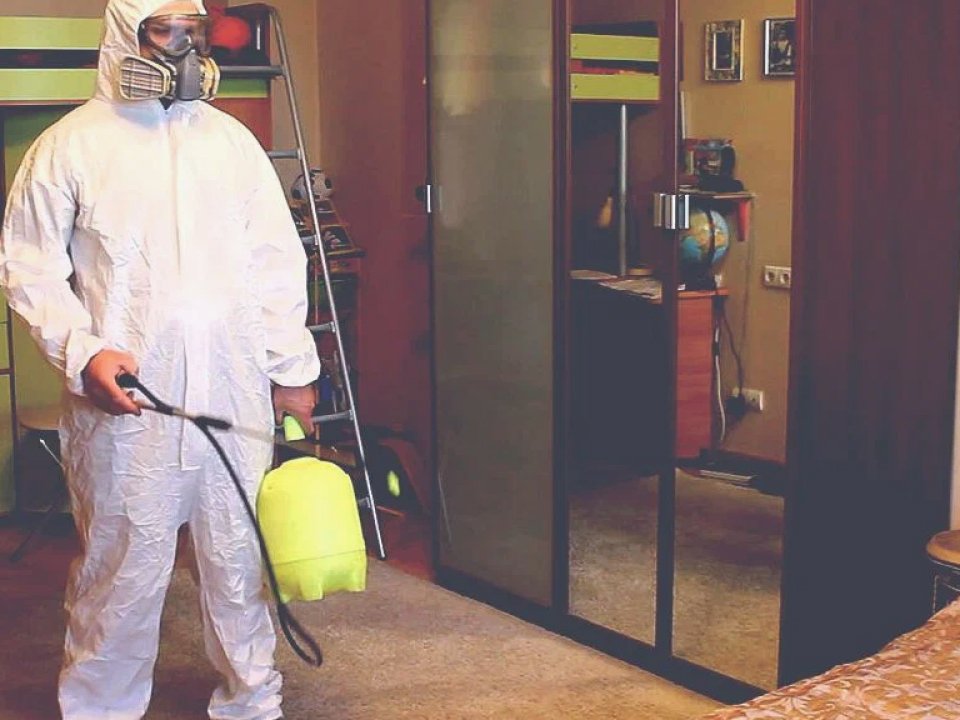 С помощью генератора холодного тумана специалист распыляет препарат, смешанный с водой, по разным поверхностям квартиры. Капли размером около 50 микрон проникают в труднодоступные места и уничтожают насекомых.