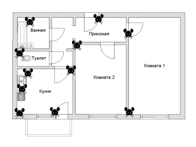 Обычно работа по избавлению от мышей в квартире выглядит так: