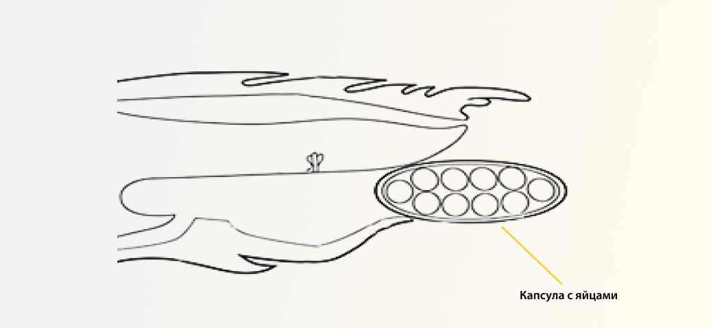 В каждой капсуле — от 20 до 50 яиц. Получается, что одна самка дает сотни новых особей.