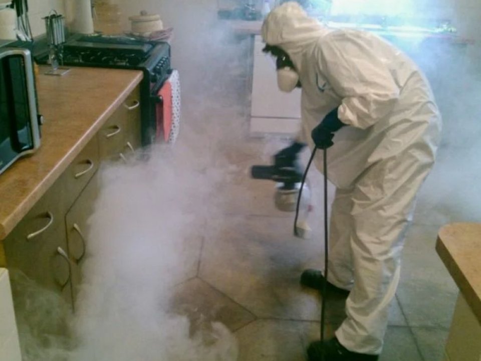 Покидать помещение нужно обязательно всем, кто не участвует в дезинсекции и не одет в защитный костюм. После использования технологии холодным или горячим туманом в квартиру можно возвращаться через 3-4 часа.